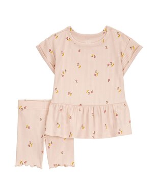 Conjunto curto infantil 2 peças texturizado frutinhas rosa | Carter's